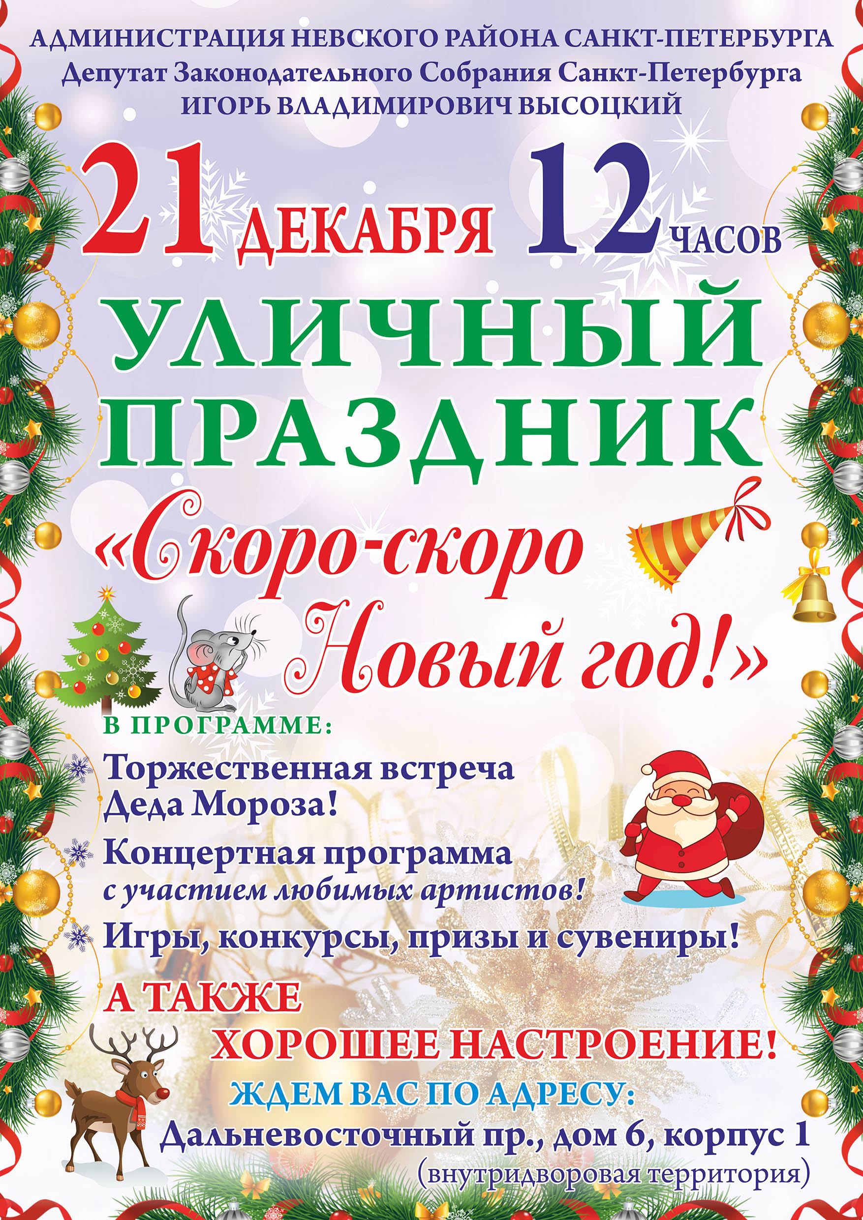21 декабря 2019 года состоятся уличные праздники "Скоро-скоро Новый год":